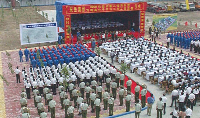 6月29日,集團(tuán)組織了聲勢(shì)浩大的創(chuàng)建20周年慶典活動(dòng)。中央部委及省市縣黨政領(lǐng)導(dǎo),50多家國(guó)外著名企業(yè)、300家國(guó)內(nèi)著名企業(yè)和高校負(fù)責(zé)人1000余人齊聚東岳,與東岳干部員工共慶節(jié)日。慶祝儀式上,舉行了東岳研究院落成剪彩儀式。在集團(tuán)創(chuàng)建20周年文藝晚會(huì)上,閻維文、蔡國(guó)慶等藝術(shù)家為全體干部員工和當(dāng)?shù)馗刹咳罕姭I(xiàn)上了一場(chǎng)豐盛的文化大餐。