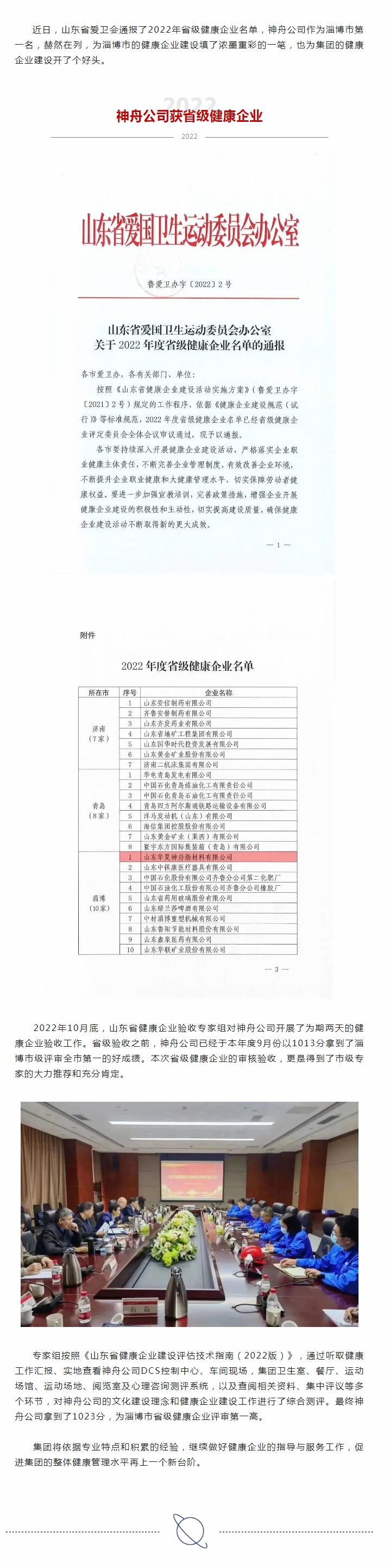 神舟公司獲省級(jí)健康企業(yè)