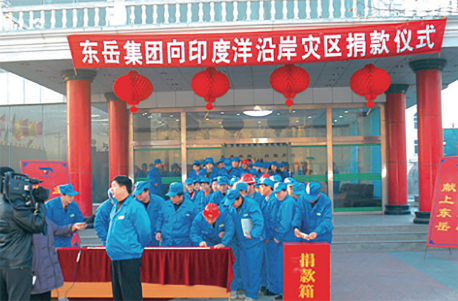 多年來,東岳不僅為地方財(cái)政收入做出了重要貢獻(xiàn)并且積極從事各類公益事業(yè),集團(tuán)黨委積極參與“慈善一日捐”,在新冠疫情、“利奇馬”臺風(fēng)、印度洋海嘯、汶川大地震等重大自然災(zāi)害面前,東岳都積極捐款救災(zāi)。幾年來,公司累計(jì)各類社會公益捐款近